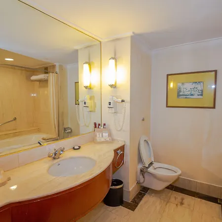 Hier stehen Ihnen 390 klimatisierte Zimmer zur Auswahl, die mit einem Flachbildfernseher mit Satellitenkanälen und WLAN sowie einem Mini-Bar-Kühlschrank und einem elektrischen Wasserkocher ausgestattet sind. Einige Zimmer verfügen auch über ein privates Bad mit einem Haartrockner und einer getrennten Toilette. Einige Badezimmer sind mit einer Sauna und einer getrennten Toilette ausgestattet und verfügen über einen Haartrockner und Hausschuhe. Diese komfortablen Zimmer bieten auch einen Blick auf die Stadt.